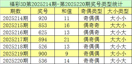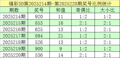 福彩3D第2025220期总结:奖号为536,奖号奇偶比为2:1,大小比为2:1,和值为14,类型为组六。