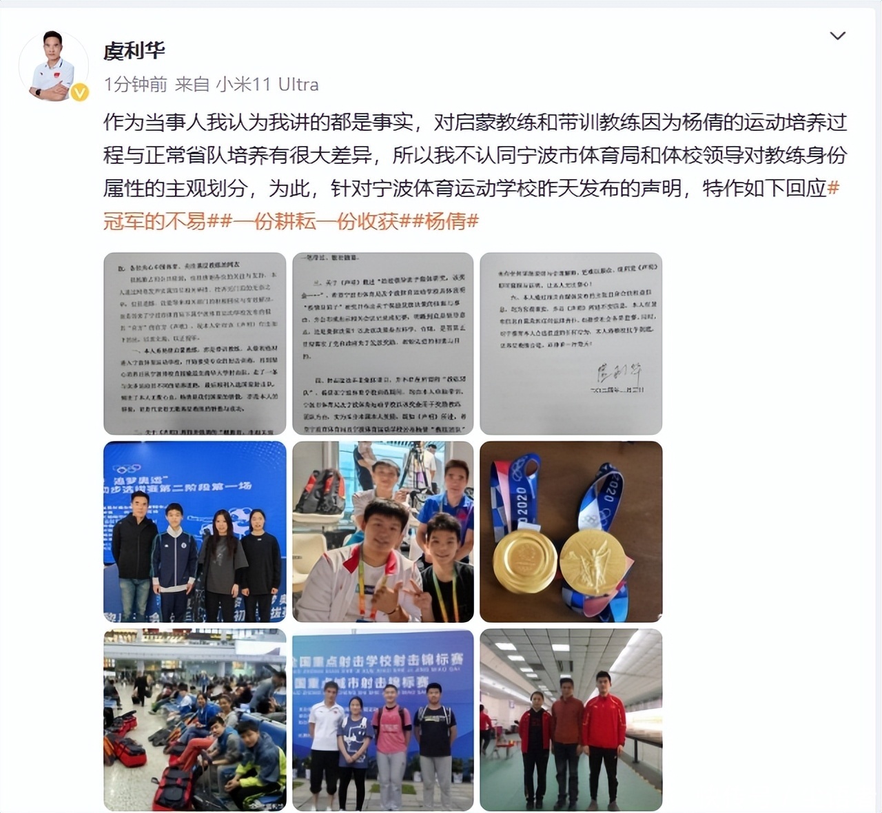 三年前的东京奥运会上,当来自清华大学的学生杨倩为中国队夺得首金的技艺,在情谊庆祝的东谈主群里,虞利华应该是有着不雷同的激情。毕竟,杨倩是他一手带出来的,是这位奥运冠军的发蒙恩师。仅仅虞利华也莫得念念到,因为杨倩的奥运会夺冠,会让在接下来的三年技艺里一直在维权。况兼最终还需要借助网罗上的力量,才得到官方的认真恢复。如今,新的后续来了,咱们一齐去望望。
